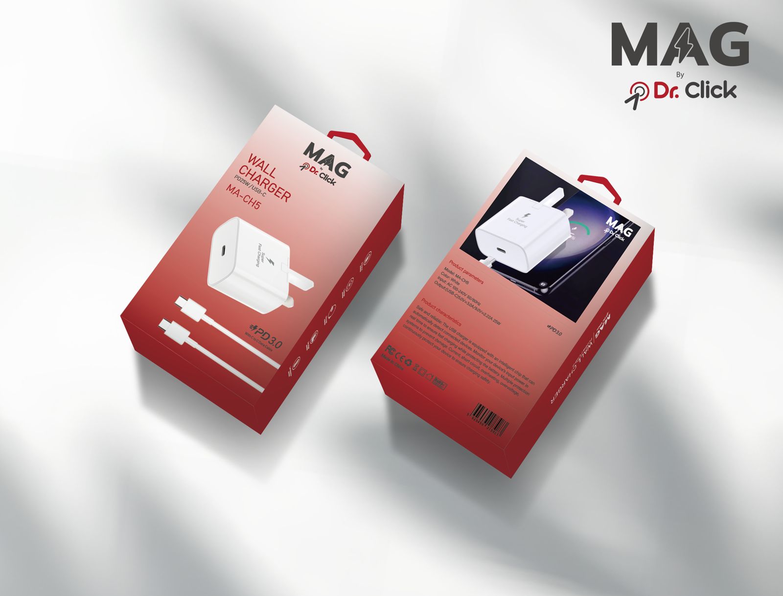 Experience fast, reliable, and efficient charging with the MAG MA-CH5 PD 3.0 Wall Charger by Dr. Click. Built with modern USB-C Power Delivery (PD 3.0) technology, this charger ensures your devices get the optimal power required for safe and rapid charging.